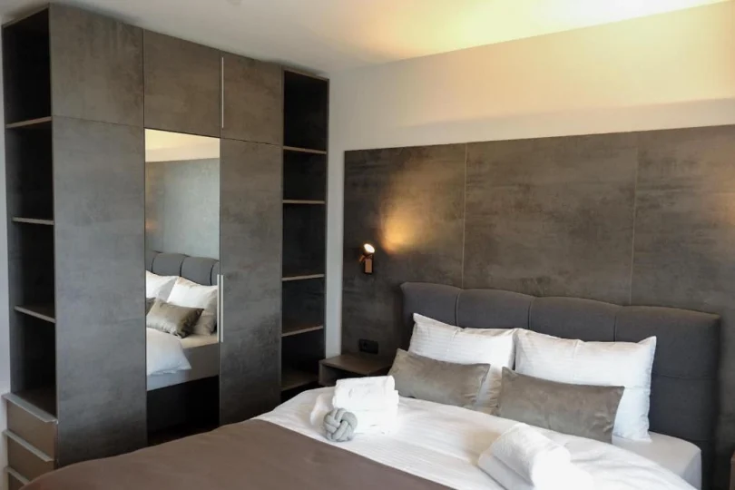 Apartman površine 43 m² sa izdvojenom spavaćom sobom i balkonom. Luksuzno opremljen za potpuni odmor: besplatan WiFi, flat-screen TV, sopstvena kuhinja i kupatilo.